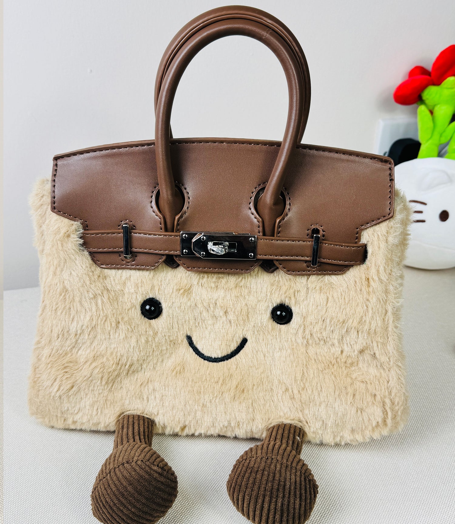 Designed to feel like a hug in bag form, its soft teddy texture and cheerful face bring comfort and smiles.